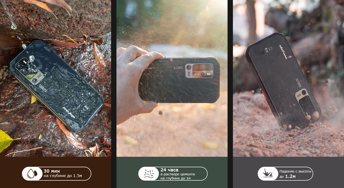 Смартфон Ulefone Armor 11 5G соответствует стандартам защиты MIL-STD-810G и IP68/IP69K. Он защищён от попадания пыли, попадания влаги внутрь при погружении на глубину до 1.5м в течение 30 минут. Он устойчив к песку, падениям, ударам, вибрации, воздействию экстремальных температур. Это позволяет ему выживать в самых суровых условиях.