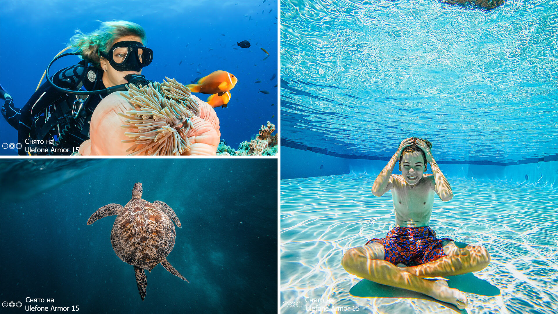 Соответствие высоким стандартам защиты Ulefone Armor 15 открывает возможности снимать под водой фото и видео.