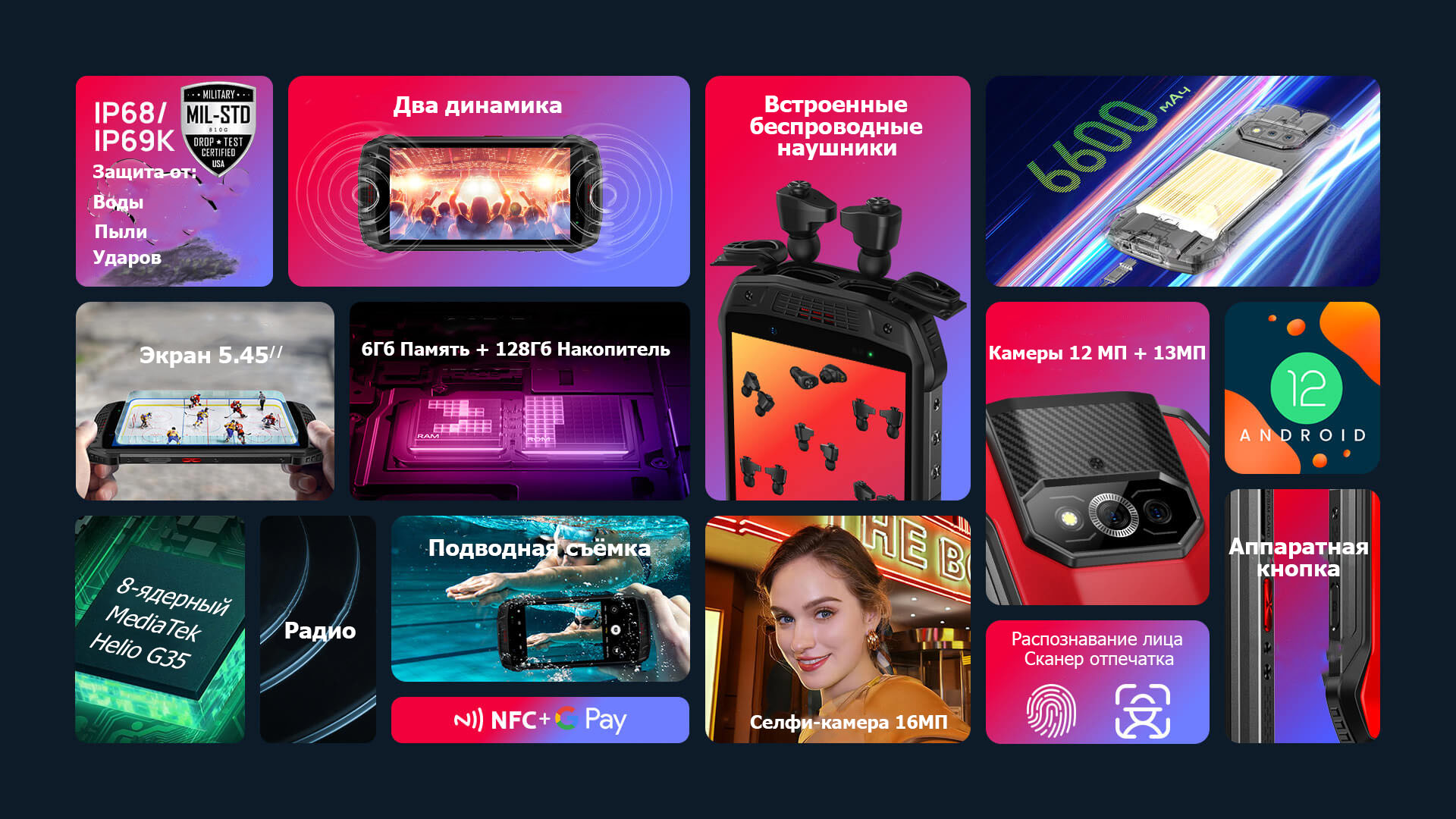 В Ulefone Armor 15 установлен 8-ядерный процессор MediaTek Helio G35, с частотой ядер до 2.3ГГц. Он обеспечивает отличную производительность. 6Гб памяти и 128Гб накопителя достаточно для любых игр, хранения тонн видео, фотографий и музыки.