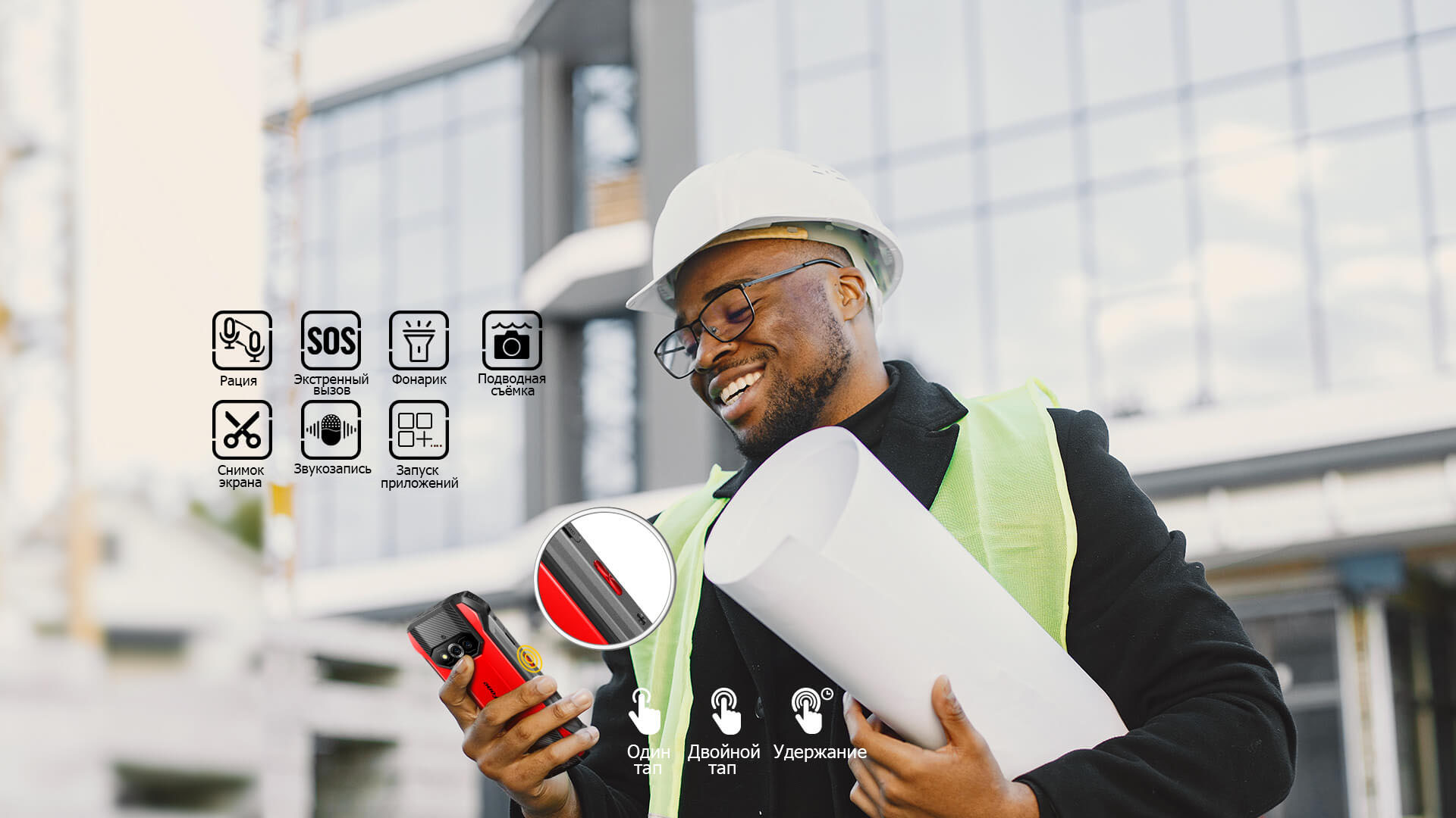 Аппаратная кнопка находится на левой боковой панели, позволяет разговаривать по рации Zello, запускать фонарик, делать снимок экрана. В настройках можно привязать любую другую функцию.