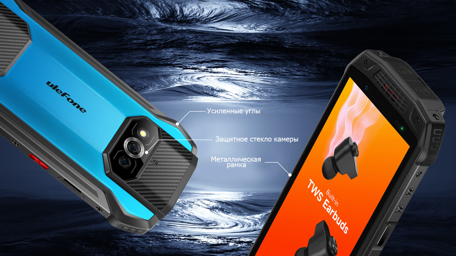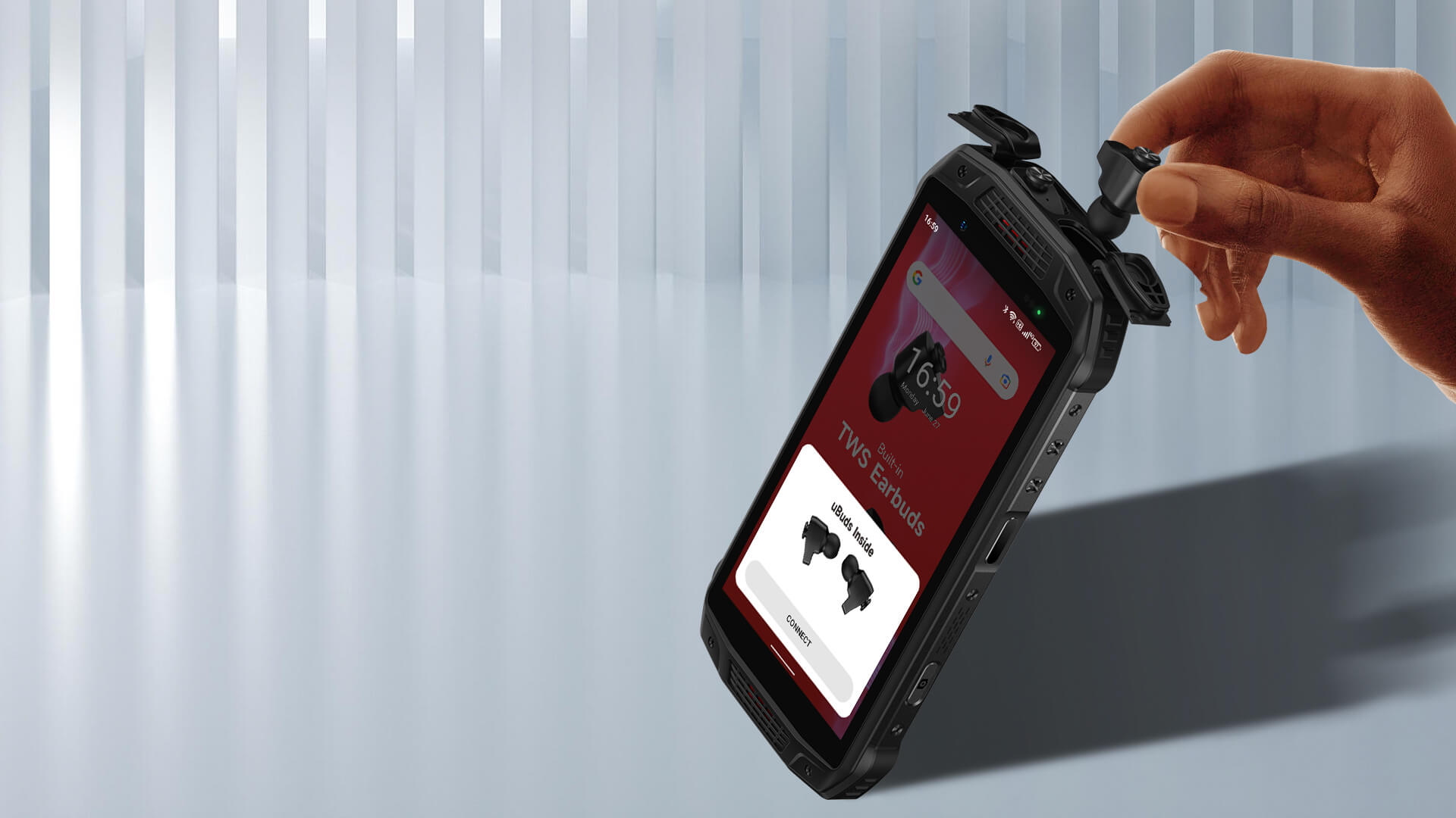 Ulefone Armor 15 является первым в мире защищённым смартфоном со встроенными беспроводными наушниками. Смартфон позволяет подзарядить наушники до 100 раз при 100% заряженном аккумуляторе смартфона, а суммарная автономность наушников составляет до 505 часов. Как только Вы извлекли наушники, они сразу подключаются к смартфону. Наушники не затеряются, они всегда в смартфоне.