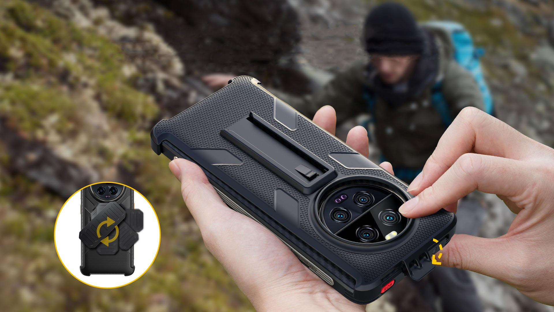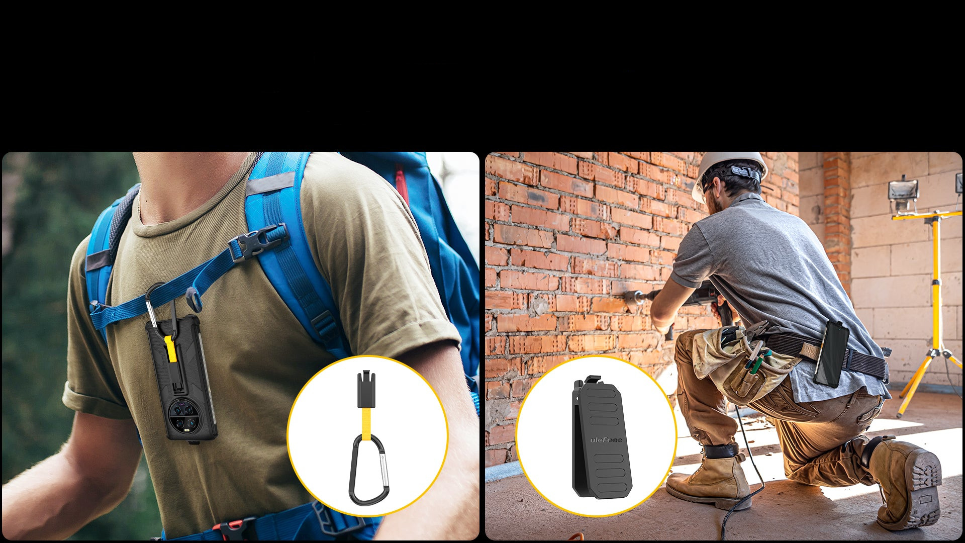 Создан для максимальной практичности и удобства, обладает зажимом для ремня, который можно развернуть на 180°. Смартфон можно надёжно закрепить на поясе с помощью карабина для быстрого доступа к устройству.
