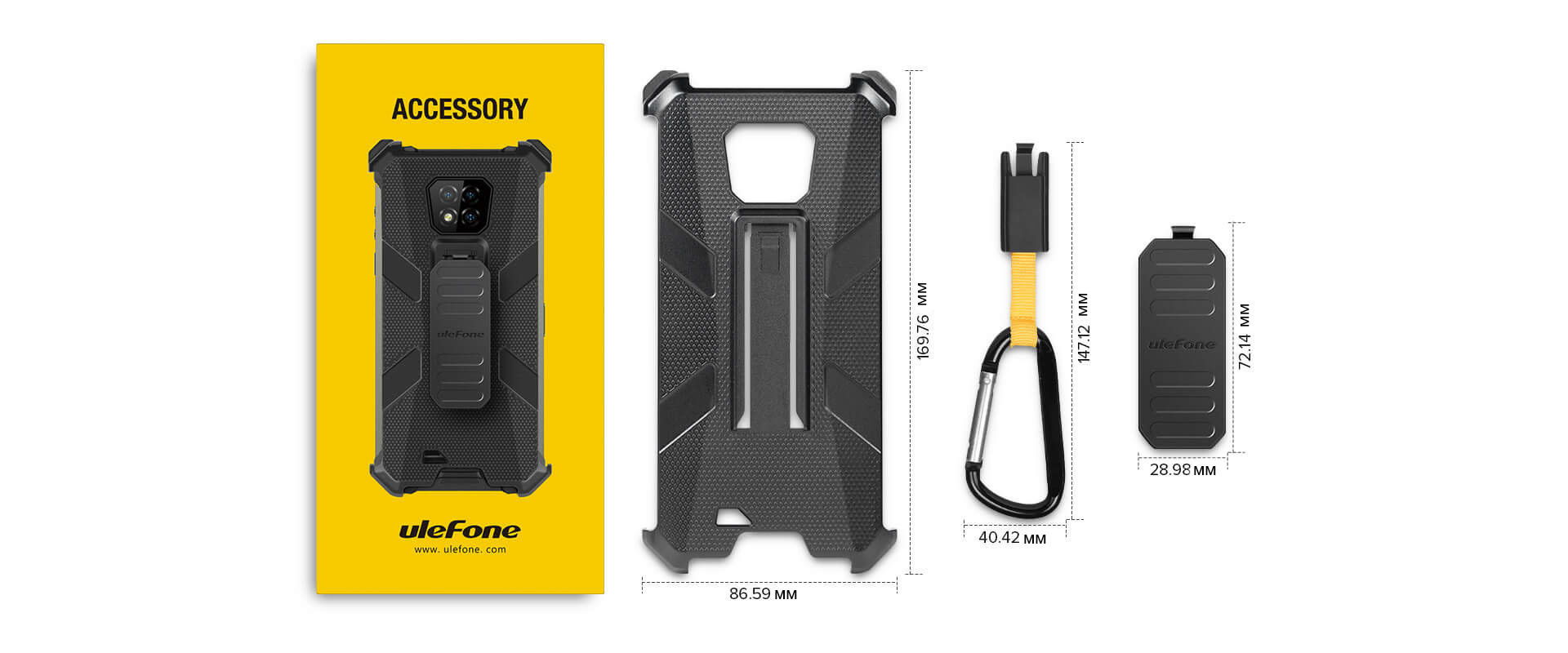 Комплектация: 1 x защитный чехол; 1 x клипса; 1 x карабин