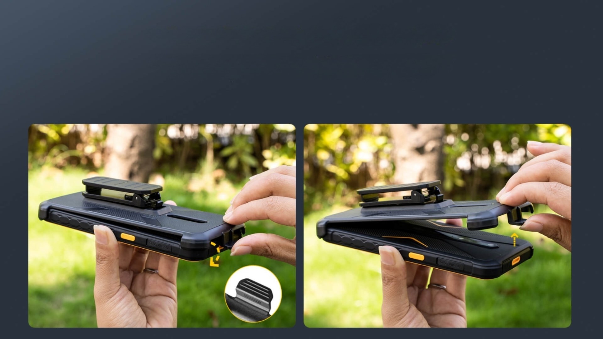 Создан для максимальной практичности и удобства, обладает зажимом для ремня, который можно развернуть на 180°. Смартфон можно надёжно закрепить на поясе с помощью карабина для быстрого доступа к устройству.