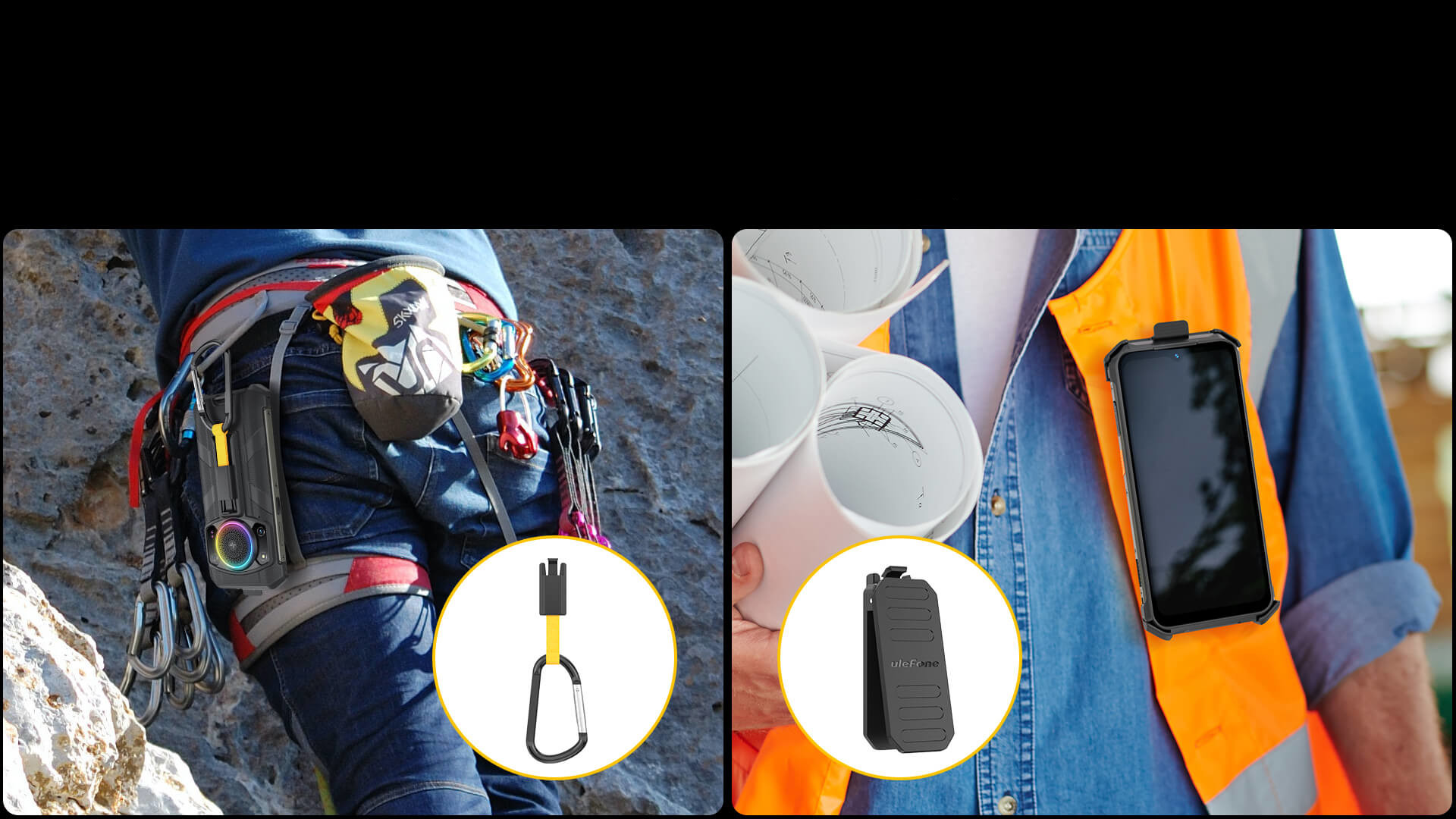 Создан для максимальной практичности и удобства, обладает зажимом для ремня, который можно развернуть на 180°. Смартфон можно надёжно закрепить на поясе с помощью карабина для быстрого доступа к устройству.