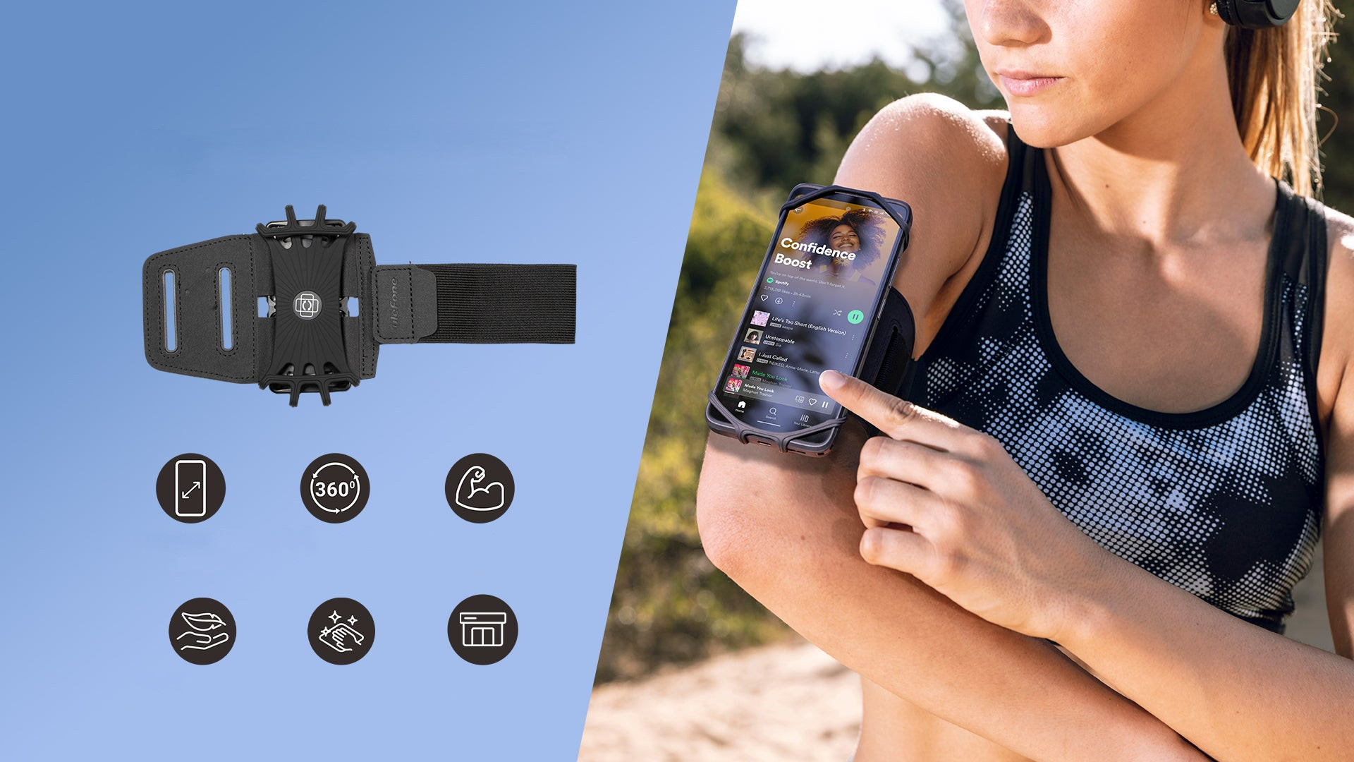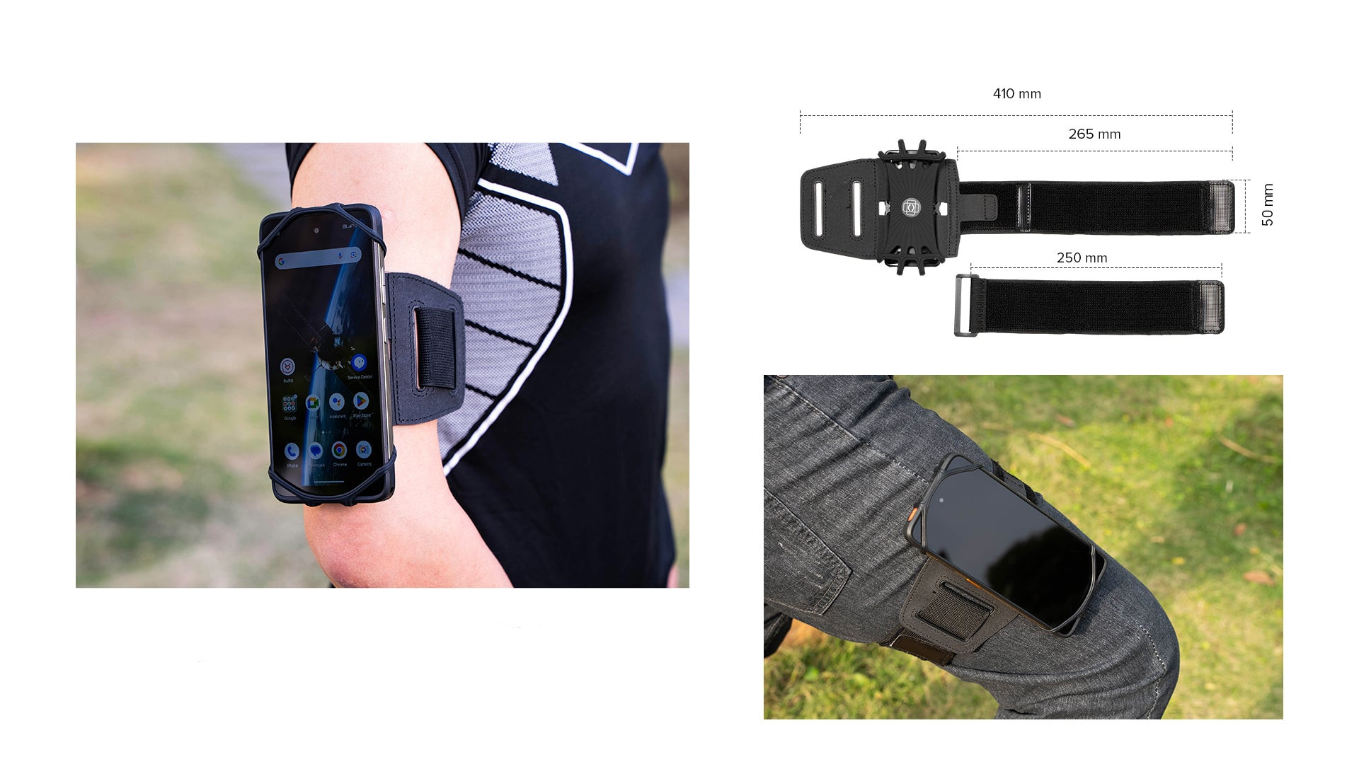 Держатель на руку выполнен из лёгких прочных материалов, дополнительно защищает смартфон от царапин и ударов. Надёжно удерживает устройство во время занятий на свежем воздухе или в полевых условиях.